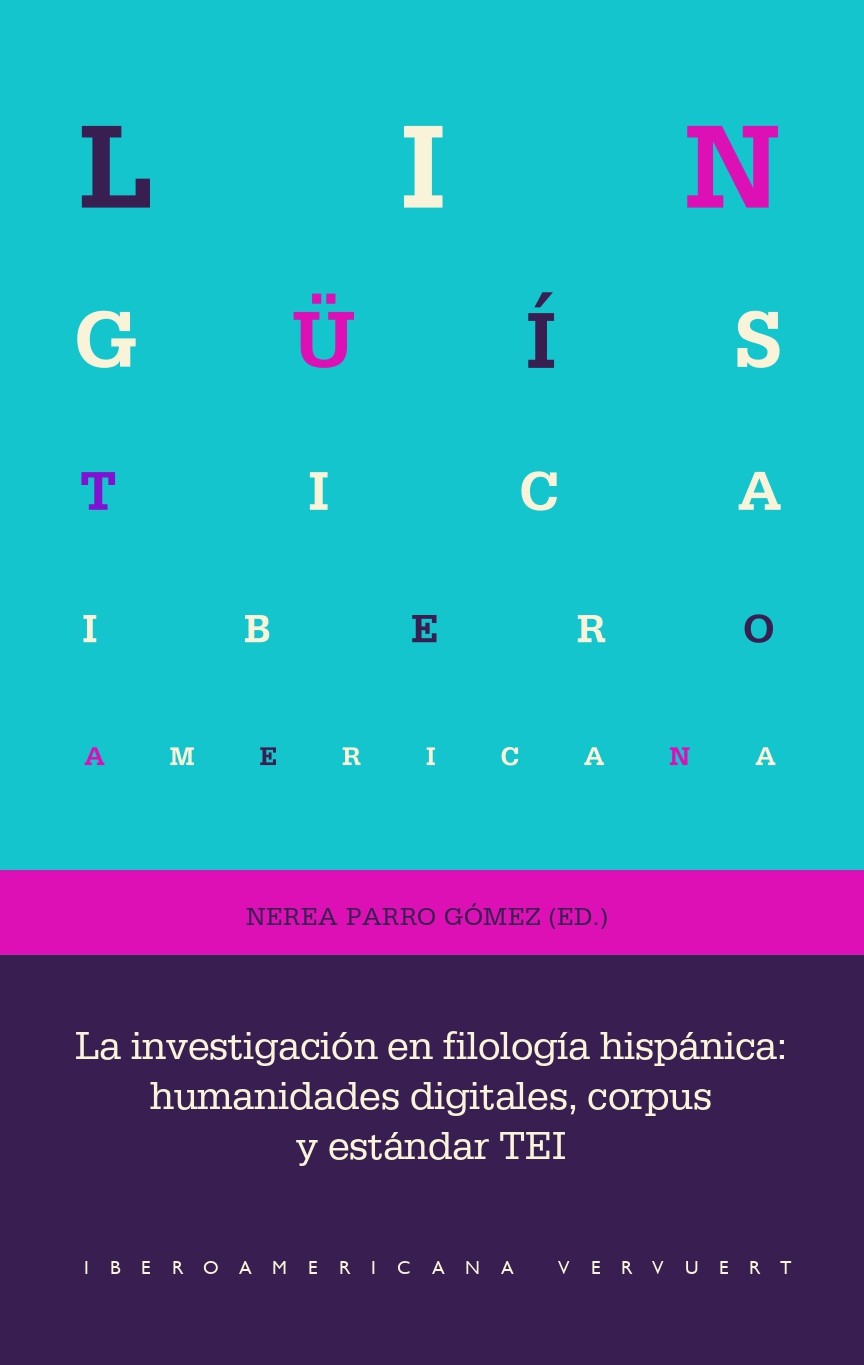 La investigación en filología hispánica : humanidades digitales, corpus y estándar TEI / Nerea Parro Gómez (ed.). Madrid: Iberoamericana, Vervuert 2026, 240 pages (Lingüística Iberoamericana, 108) ISBN 9788491925767 (Nº:266046) Lingüística / Filología / Actualidad - XXI / España DISPONIBLE EN MARZO DE 2026. Este monográfico reúne una selección de estudios que exploran el uso del estándar TEI (Text Encoding Initiative) en diversos campos de la filología hispánica, desde la edición crítica hasta el análisis lingüístico y documental, por lo que puede resultar de interés para filólogos, lingüistas, historiadores e investigadores interesados por la intersección entre la tradición textual y las herramientas digitales. A lo largo de sus capítulos se analizan los desafíos técnicos, metodológicos y conceptuales implicados en la creación y análisis de corpus digitales, así como se ofrece una invitación a reflexionar sobre la renovación de las prácticas filológicas en el entorno digital. ACCESO ABIERTO.